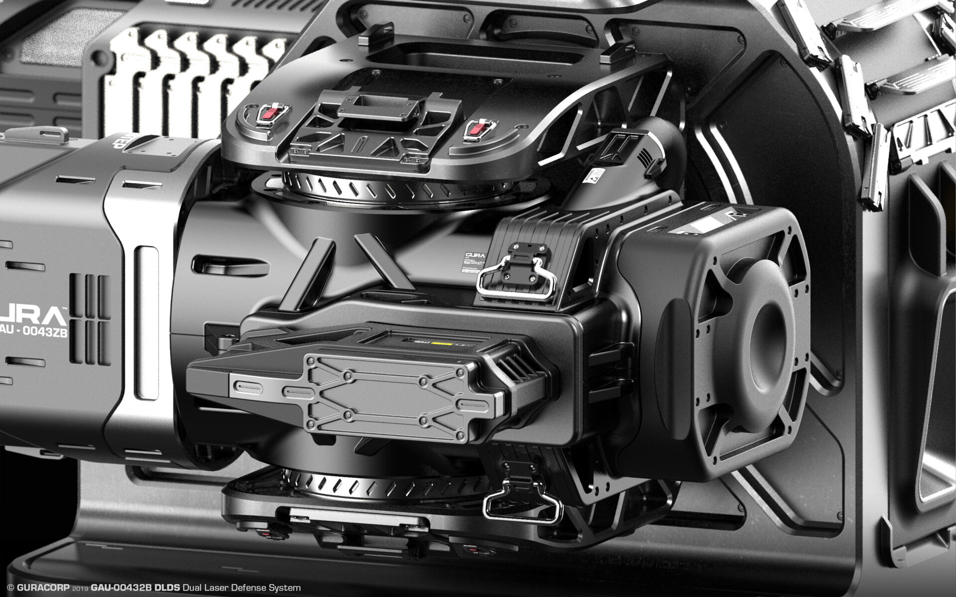 GURA™ GAU-00432B DLDS (Dual Laser Defense System). Big defensive weapon system for turret placement and/or carrier/vehicle protection.